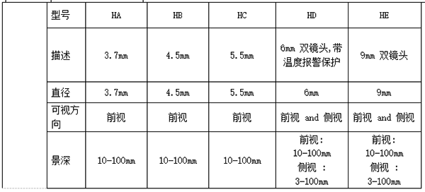 此外,該款產品有直徑3.7mm、4.5mm、5.5mm三種直視鏡頭,直徑6mm、9mm兩種雙鏡頭,讓您可以按需選擇,一機多管,以最優的價格獲得最佳的搭配組合,以適應多種工況環境。