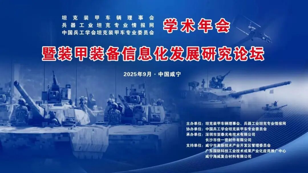 由坦克裝甲車輛理事會、兵器工業(yè)坦克專業(yè)情報網(wǎng)主辦,深圳市亞泰光電技術(shù)有限公司承辦的"2025年坦克裝甲車輛學術(shù)年會暨裝甲裝備信息化發(fā)展研究論壇"將于9月17日至19日在湖北咸寧華信大酒店隆重舉行。