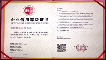 亞泰光電快訊:近日,由商務部信用工作辦公室、國資委行業協會聯系辦公室、中國中小企業協會指導的企業信用等級評定對深圳市亞泰光電技術有限公司信用狀況進行評價結果為AAA級,標志著亞泰光電在企業信用建設、社會信用評價方面取得了實質性成果,必將進一步增強公司的市場競爭力。