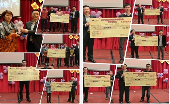 本屆年會(huì)由總經(jīng)辦劉春龍負(fù)責(zé),各部門負(fù)責(zé)人做了關(guān)于2013年各部門工作總結(jié)報(bào)告以及2014年各部門工作規(guī)劃,接著公司總經(jīng)理鄭翔做了2013年工作總結(jié)報(bào)告,并對2014年公司發(fā)展做出了全面規(guī)劃。各部經(jīng)理宣讀了獲得2013年公司優(yōu)秀員工名單,并號(hào)召全公司同事向他們學(xué)習(xí)。隨后,總經(jīng)理親自為2013年對公司做出卓越貢獻(xiàn)的員工及團(tuán)隊(duì)頒發(fā)獎(jiǎng)金,已獎(jiǎng)勵(lì)他們過去一年的取得的成果 。 年會(huì)時(shí),同事們歡聚一堂,各種有趣的娛樂游戲?qū)⒛陼?huì)推向了高潮。