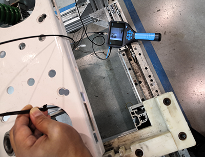 本項目需求引入自動化檢測設備,用以檢測電氣開關機械擋卡安裝位置是否到位。主要是與客戶方試驗并確認亞泰內窺鏡探頭拍攝位置,演示內窺鏡直管3mm側視鏡頭拍攝效果,并確定最終內窺鏡檢測實施方案。