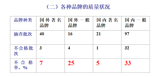 (二)各種品牌的質(zhì)量狀況