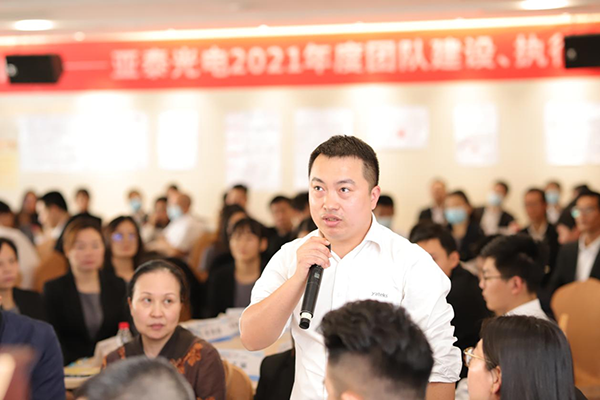 2021年12月10-11日為期兩天的亞泰光電2021年度全員團隊管理、執行力培訓圓滿結束。本次培訓邀請了廣東國元企業管理有限公司創始人李國林和尹冬元老師現場授課,公司領導及全體員工參加了本次活動。