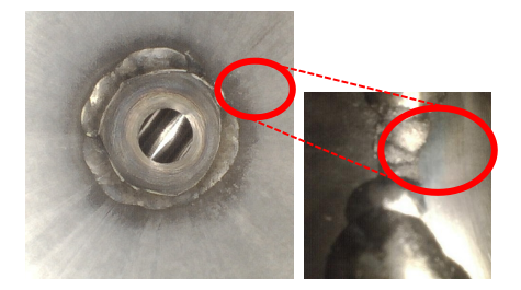 圖片:2.8 毫米雙視圖視頻內(nèi)窺鏡位于 ?” 內(nèi)徑燃油歧管管道內(nèi)。左圖顯示針對(duì)目標(biāo)軌道焊縫的前向視圖 (DOV)。右圖顯示針對(duì)焊縫的側(cè)向 DOV。這顯示了可能存在問題的不一致焊道。