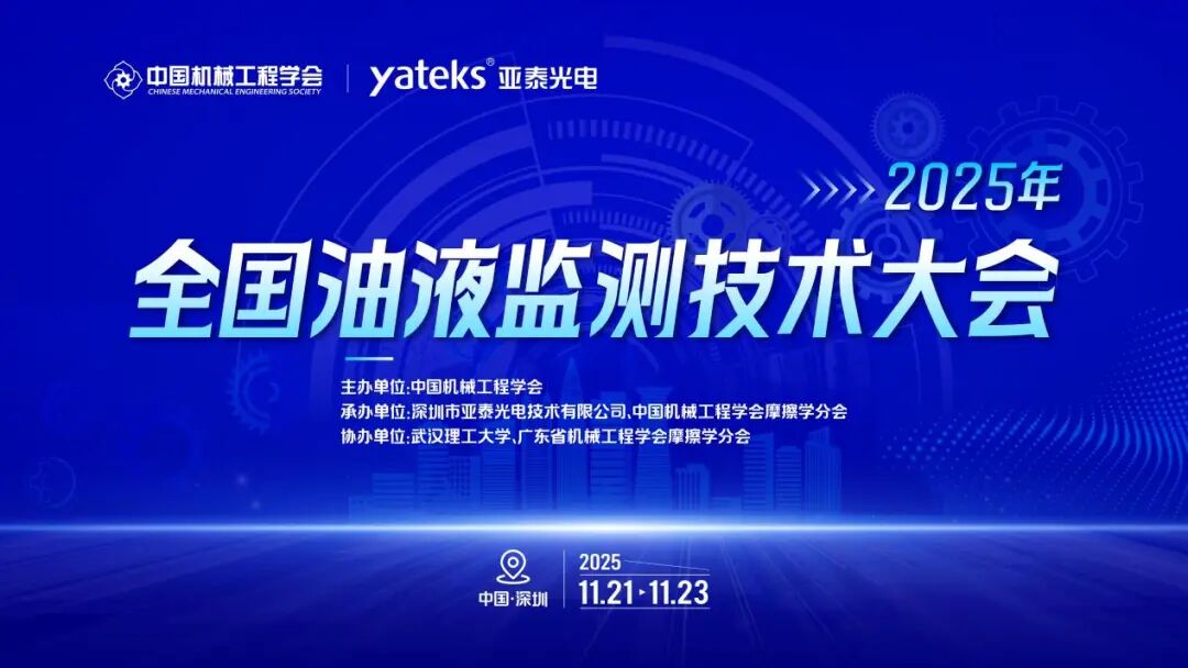 “2025年油液監測技術會議”將于2025年11月21日-23日在廣東·深圳中海凱驪大酒店隆重召開 。本次大會由中國機械工程學會主辦,深圳市亞泰光電技術有限公司與中國機械工程學會摩擦學分會共同承辦,將以“AI賦能油液監測與智能診斷方法”為主題,攜手業界精英,共繪智能運維的新藍圖。